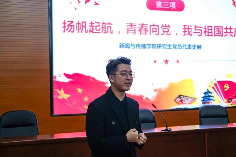 之后,公司研究生党员代表史赫同学结合自己的亲身经历做出“扬帆起航,青春向党,我与祖国共成长”的演讲,讲述了他作为中国共产党员的经验与体悟。他从“什么是党”“什么是党员”两个问题出发,结合自己在西藏支教一年中的所见所闻所感,以生动事例证明了和平年代我党具有的强大生命力与号召力,号召我们积极投身于中国特色社会主义的生动实践中,用青春汗水书写新时代画卷,与祖国共成长。