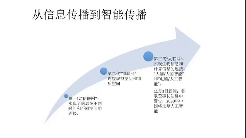 陈昌凤老师指出,从扩展人类体力、灵巧性的技术到扩展感觉范围、改造自然的技术,再到如今扩展或支持脑力的一系列技术,每一项技术都是人类意愿的表达。人类通过工具扩展力量、控制周围的环境,重构人类和社会、自然的关系。而经过了第三次技术革命后,现在我们正处于第四次技术革命,即智能化时代,这对我们的新闻传播学科、新闻传播教育产生了深远影响,未来同学们从事的很多工作也将会跟第三次、第四次革命密切相关。技术的发展,也带来了网络的延伸和发展。第一代“信联网”是信息在不同时间和不同空间的连接;第二代网络是把虚拟空间和物质空间进行了连接,即“物联网”;在此基础上,由于技术的飞跃,现在开始建立生物信息与计算信息的连接,被称作“智联网”、“人联网”。所以互联网其实也在不断变化之中,这为我们的新闻传播学科研究也带来了新议题。