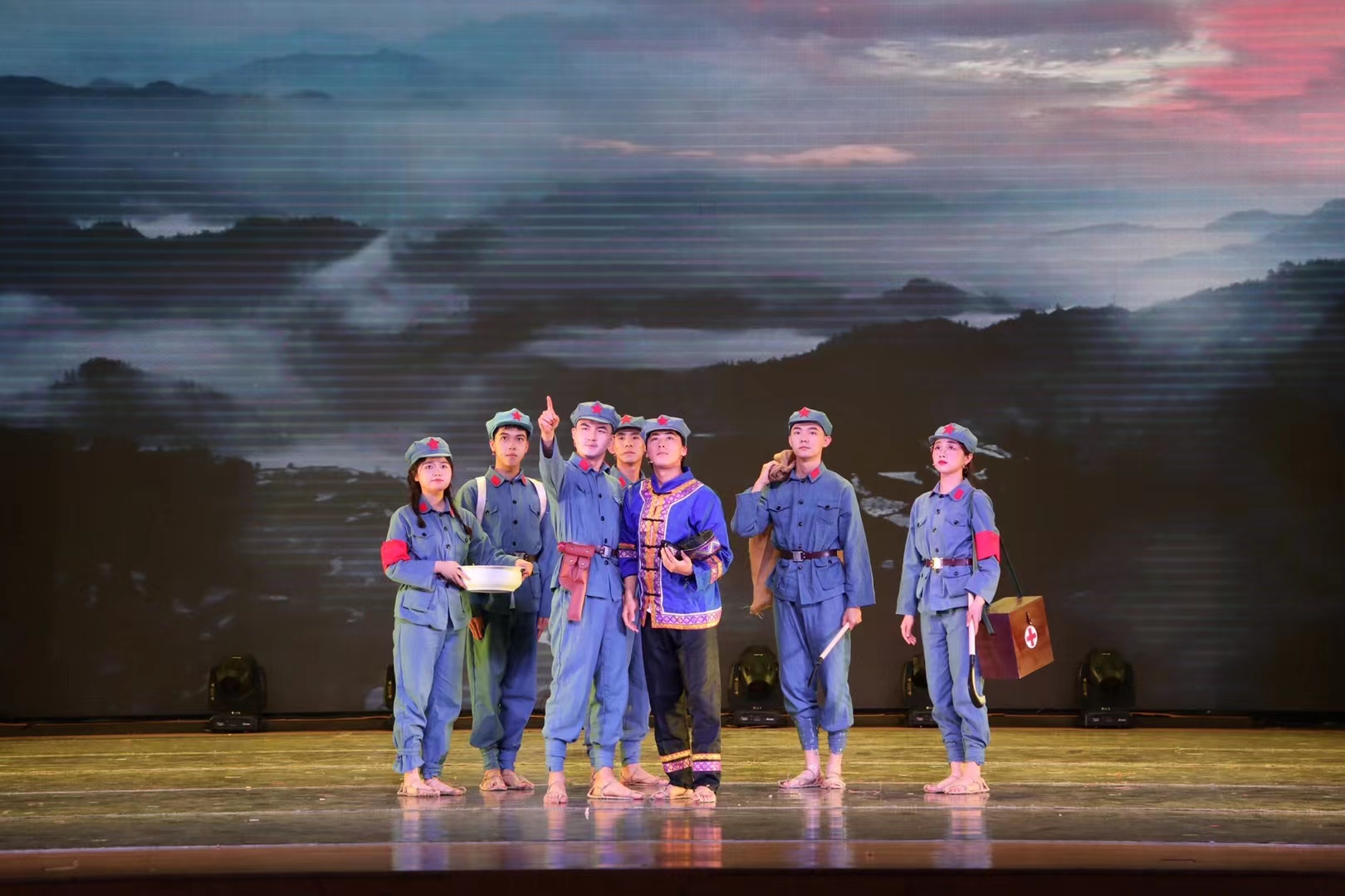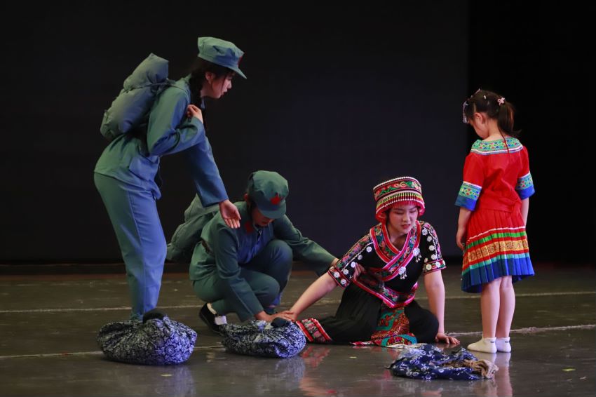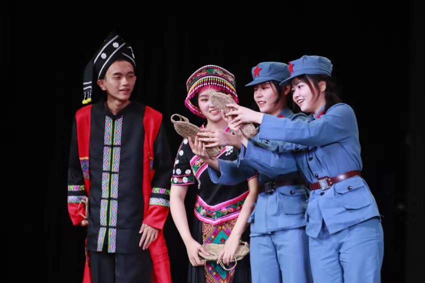 该剧由公司岳广鹏老师担任总策划和总导演,苏米尔老师担任执行导演,员工团队40余人担任主创和演职人员,历时半年完成调研、剧本创作与排演。《长征路·民族情》是公司开展的以“铸牢中华民族共同体意识”为主线的专业思政教学实践,体现了研读讨论、调研采风、创作实践、专业实践、融合传播与学术研讨于一体的综合专业训练。