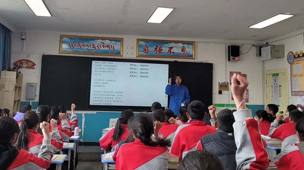 最后,我觉得支教的第四个意义是要给自己的——理想。其实人们常说,广大青年要将个人的发展和国家发展紧密结合,和时代同频共振,同时也要艰苦奋斗,砥砺前行。对于尚在象牙塔的员工而言,概念总显得太过宏大,但是踏上高原后,所有的概念都变得具体了起来,支教这一年,高原的地理环境、陌生的教书任务,使得大家都面临了很多生理、心理上的双重考验,但最后所收获的喜悦感动,早已把所有困难转换成了成长。同时,在这一年的西藏生活中,我亲眼看到了新时代下新西藏建设的日新月异,切身感受到了国家对于当地教育投入的实心实意,国家的发展变得真实可感,个人的努力也早已和国家息息相关。