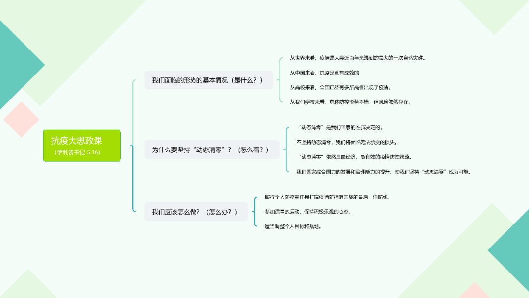 此次大思政课是公司全力做好员工疫情防控工作过程中的一次重要宣讲。自本轮疫情发生以来,公司上下坚持把疫情防控作为当前首要的政治任务,强化使命担当、奋力冲在一线。员工工作队伍全体24小时在线待命,分类分班召开多场防疫线上会议,老师们夜以继日扎实做好数据报送、核酸打卡、校园封闭管理、员工心理关爱及各类突发事件处置工作,确保全体同学身心健康。