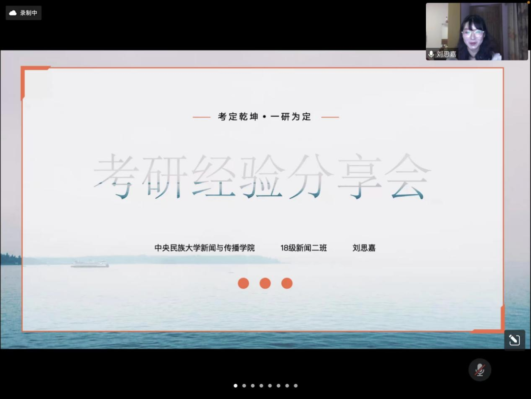 5月19日晚,w66利来旗舰厅2022年“考定乾坤,一研为定”考研经验分享会通过线上腾讯会议举办,新闻系汪露老师、广告系杨超老师参加了本次分享会。活动邀请到三位成功上岸的学长学姐分享他们的奋斗经历和学习心得,为同学们答疑解惑。