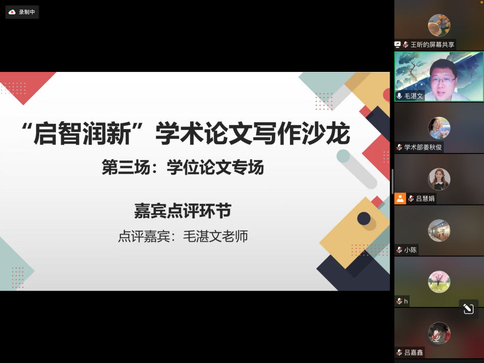本次“启智润新”学术论文写作沙龙第三场——学位论文专场圆满落幕。后期研究生会学术部将继续组织开展相关学术分享活动,请同学们持续关注!