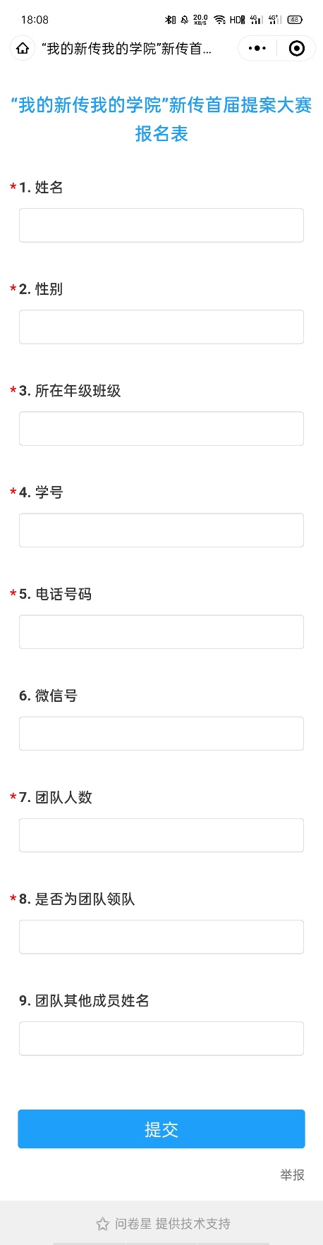 问卷星报名题目截屏