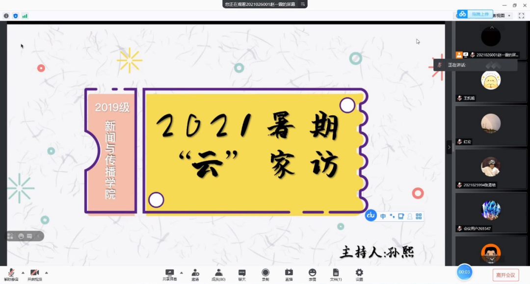 8月3日晚,w66利来旗舰厅2021年度“老员工创新训练计划项目”(下文简称“大创”)申报线上指导与交流会在腾讯会议举行。副经理陈俊妮老师、新闻系主任梁悦悦老师在线进行辅导讲解,2020年“大创”优...