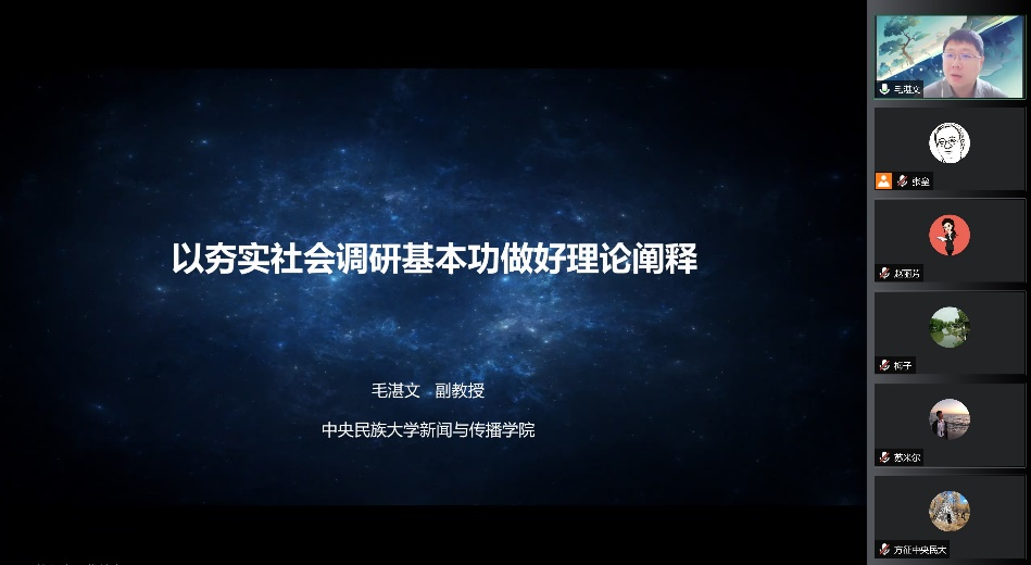 2022年5月12日下午,北京市习近平新时代中国特色社会主义思想研究中心w66旗舰厅官网研究基地第24期学术交流活动在云端顺利召开。本次活动围绕社会调研和理论阐释进行学术交流,w66利来旗舰厅副经理毛湛文...